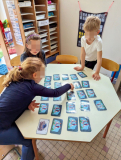 Vendredi matin, nous avons fêté le centième jour d'école. Les enfants ont participé à un escape game. À l issu de ce jeu, ils ont trouvé un code qui leur a permis d' ouvrir des cadenas et de découvrir nos deux nouvelles mascottes: Caroline et Choupette.