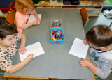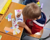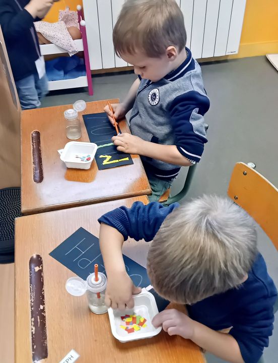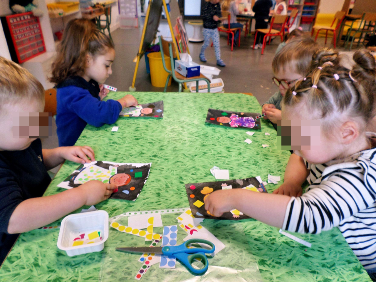Au mois d’octobre, nous avons pris le temps de finir nos décorations pour la classe et les cahiers. En plus des ateliers de peinture et collage, nous avons aussi travaillé la motricité fine et le prénom avec petits et moyens. Les plus jeunes découvrent aussi doucement les quantités tandis que les moyens ont réinvestis les apprentissages de l'année passée sur les nombres.
